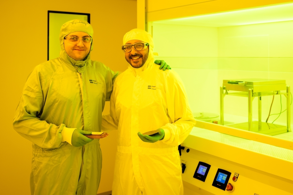 Liquid chips can only be built in a cleanroom, with air filtration, anti-static precautions and special suits for staff. A single speck of dust can ruin the final result. At 300 m², the MICROLAB is a generously sized cleanroom packed with high-tech equipment for etching chips.